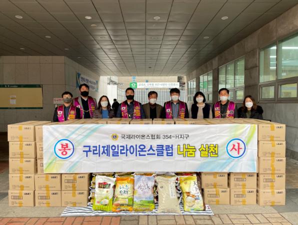 구리제일라이온스클럽은 ▲양곡(10kg) 40포 ▲치약·칫솔 4,500세트를 수택1, 2, 3동의 취약계층을 위해 준비했다.