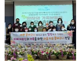 [한국뉴스타임=편집국] 포천시농업기술센터는 지난 9일 포천시치매안심센터에 등록된 치매 어르신을 돌보고 있는 가족 50명을 대상으로 마음 치유 꽃바구니를 전달했다.