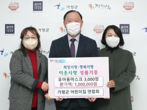 [한국뉴스타임=편집국] 지난 12월 9일 어려운 취약계층 아동에게 전해달라며 유아용 마스크 3,000장(100만 원 상당)을 가평군에 기탁했다.
