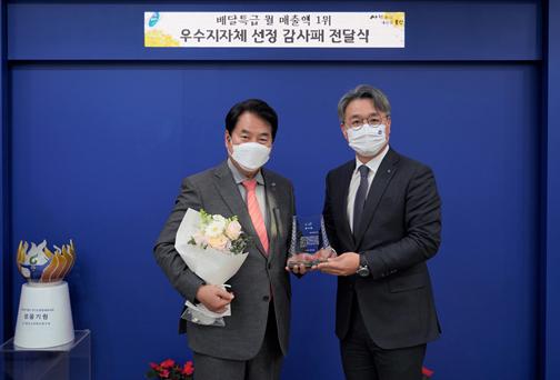 용인은 배달특급 홍보 및 사용 장려에 적극적으로 협력하고, 소상공인의 판로지원을 통한 지역경제 활성화에 크게 기여한 공로를 인정받았다.