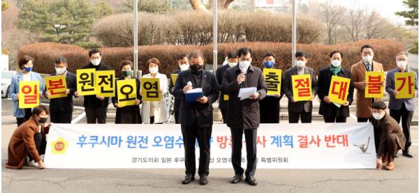 [한국뉴스타임=편집국] 경기도의회 일본 후쿠시마 방사성 오염수 방류 대응 특별위원회(위원장 안혜영, 수원11)는 12월 16일 경기도의회 소녀상 앞에서, “후쿠시마 원전 오염수 해양 방류 공사 계획” 반대성명을 발표하였다.
