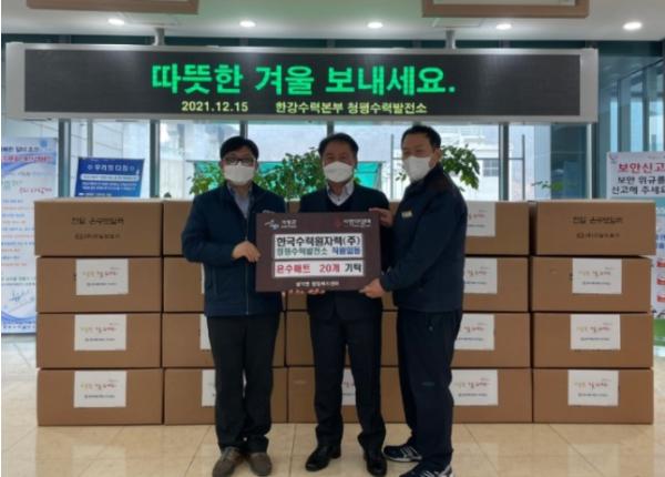 이번 기탁은 청평수력발전소 직원들이 십시일반 모금하여 기탁한 물품으로 청평면과 설악면 저소득 이웃과 동절기 난방 취약계층에게 전달 될 예정이다.