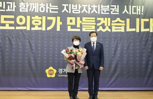 [한국뉴스타임=편집국] 경기도의회 교육행정위원회 고은정 의원(더불어민주당, 고양9)이 17일 경기도의회 대회의실에서 개최된 종무식에서 ‘제11회 대한민국시도의회의장협의회 우수의정대상’을 수상했다.