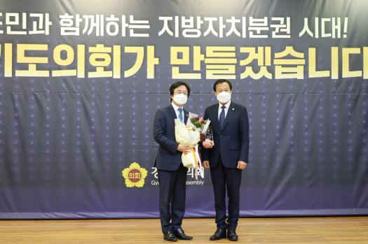 [한국뉴스타임=편집국] 경기도의회 교육행정위원회 배수문 의원(더불어민주당, 과천)이 17일 경기도의회 대회의실에서 개최된 종무식에서 ‘제11회 대한민국시도의회의장협의회 우수의정대상’을 수상했다.