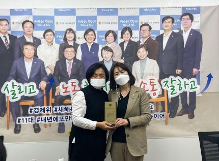 경제노동위원회는 2020년 7월 제10대 후반기 상임위 구성 이후 지방 입법 및 의정발전에 기여하고 2021년 행정사무감사를 탁월하게 수행한 우수의원을 선정하여 의정활동을 격려하고자 공로패를 수여한다.