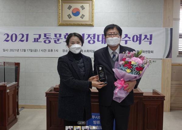 수상 후 조광희 의원은 “오늘 수상은 앞으로 도내 교통편의 증진을 통한 도민 삶의 질 향상에 더욱 노력하라고 주어진 의미있는 상으로 생각한다”며 “모두가 안전하고 편리한 교통문화가 만들어 질 수 있도록 정책·예산 등 최선의 의정활동을 수행하겠다”고 말했다.