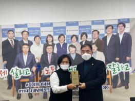 [한국뉴스타임=편집국] 경기도의회 경제노동위원회 이원웅 의원(더민주, 포천2)이 12월 16일 상임위원회 회의실에서 경제노동위원회가 주관하고, 경제노동위원장이 수여하는 2021년 행정사무감사 우수의원에 선정되어 공로패를 받았다.