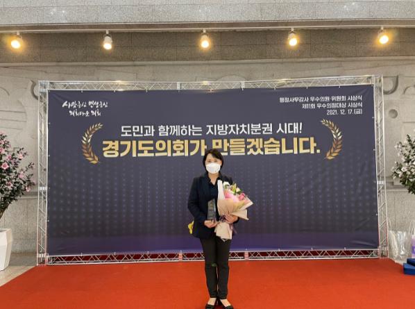 [한국뉴스타임=편집국] 경기도의회 경제노동위원회 심민자 의원(더불어민주당, 김포1)이 17일 경기도의회 대회의실에서 개최된 종무식에서 ‘제11회 대한민국시도의회의장협의회 우수의정대상’을 수상했다.