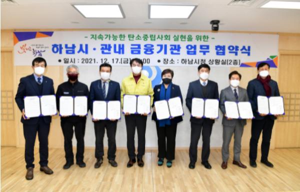 [한국뉴스타임=편집국] 하남시는 17일 시청 상황실에서 관내 7개 금융기관과 탄소중립 업무협약을 체결했다고 밝혔다.