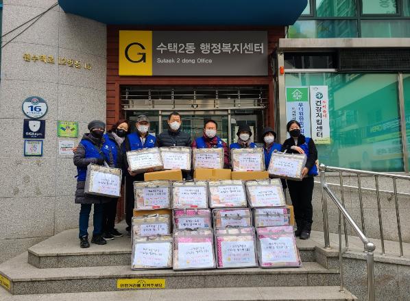 유병태 위원장과 회원들은 “수택2동 어려운 이웃들이 추운 겨울과 코로나를 잘 극복하고 건강하게 지내시길 바란다.”고 입을 모았다.