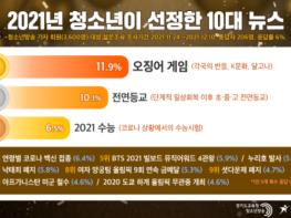 이밖에 ‘누리호 발사’, ‘낙태죄 폐지’, ‘셧다운제 폐지’, ‘아프가니스탄 미군 철수’ 등이 순위에 올라 청소년들이 사회 이슈에 고른 관심을 나타냈다.