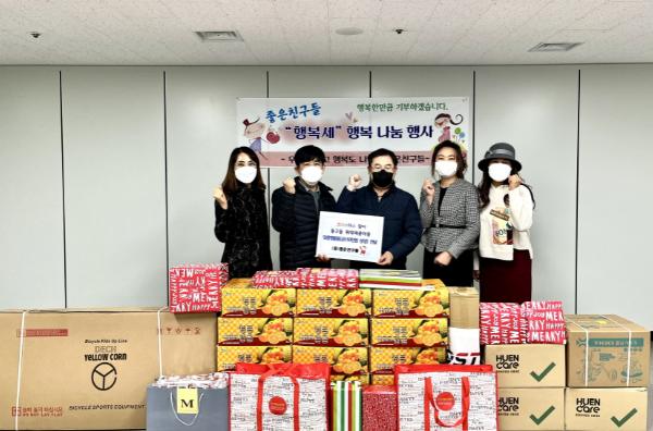 [한국뉴스타임=편집국] 구리시 동구동 행정복지센터에서는 17일 봉사 후원단체인 ‘좋은친구들(회장 이행재)’과‘크리스마스 맞이 맞춤형 후원품 전달식’을 가졌다.