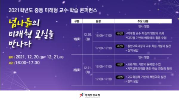 콘퍼런스는 20일, 21일 이틀 동안 유튜브 경기교사온TV(중등)를 통해 실시간 온라인으로 진행해 누구나 시청할 수 있다.