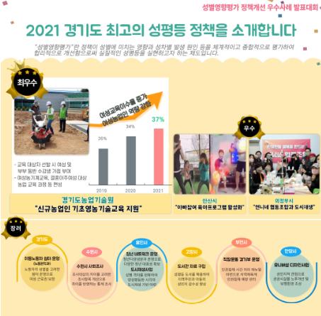 경기도는 20일 이런 내용을 담은 ‘2021년 경기도 성별영향평가 정책개선 우수사례 발표대회’ 결과를 발표대회 누리집에 공개했다.