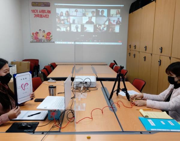 수료식은 코로나19 방역지침 준수를 위해 비대면으로 진행됐으며, 가족봉사단 활동 공유 및 평가 후 한 해 동안 봉사활동을 성실히 참여한 가족들에게 수료증을 전달하는 뜻깊은 시간을 가졌다.