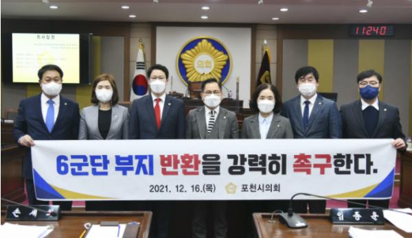 시의회는 이에 앞선 지난 16일 제161회 제2차 정례회 제2차 본회의를 통해 ‘6군단 부지 반환 촉구 결의안’을 채택하고, 청와대와 국회 국방위원회, 국방부, 행정안전부 등에 결의안을 전달했다.