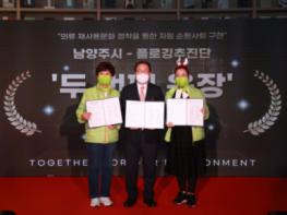 또한, 시상식에 앞서 남양주시와 플로깅추진단(단장 박영희)은 의류 재사용 문화를 정착시키고 자원 낭비를 줄이기 위해 시에서 추진 중인 재사용 의류 분리배출 사업 ‘두 번째 옷장’과 관련된 업무 협약을 맺고, 향후 상호 협력하며 발전 방안을 모색해 나가기로 약속했다.