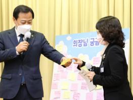 이어 직급 및 부서별로 선정된 직원들이 참여한 감사 메시지 영상을 시청하는 한편, 평소 의장에게 궁금한 사항을 주제로 직원들과 대화하는 시간을 가졌다.