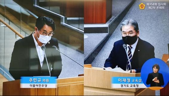 교육청에 대한 첫 질의로 추 의원은 “제20대 대통령 당선인의 대학수학능력시험을 통한 정시 모집인원 비율 확대 및 대입전형 단순화에 대한 의견은 무엇인지”를 물었다.