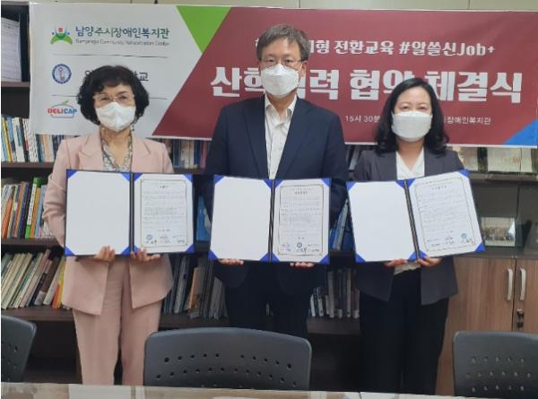 [한국뉴스타임=편집국] 경기도구리남양주교육지원청 와부고등학교는 남양주 관내 장애인 직업 전문기관인 남양주시장애인복지관, 장애인표준사업장인 ㈜델리캡과 5월 23일 남양주시장애인복지관 2층 관장실에서 ‘학교연계형 전환교육 산학협력 현장실습 업무협약’을 체결하였다.