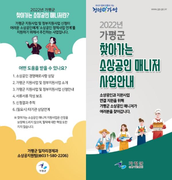 군이 올해 처음으로 추진하는 "가평군 찾아가는 소상공인 매니저” 운영사업은 정보가 부족한 소상공인을 직접 찾아가 정부나 지자체 지원사업의 도움을 받을 수 있도록 사업안내, 서류준비, 사업접수 등을 도와주는 사업이다.