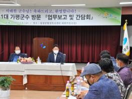 [한국뉴스타임=보도국] 8일 오전 서태원 가평군수는 청평면행정복지센터를 방문하여 업무보고를 받고 지역 단체장들과 간담회를 개최하였다.