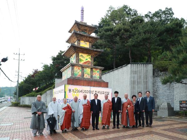 남양주시불교연합회(회장 봉선사 초격스님)는 26일 시청 앞 경관광장에서 불기 2564년 부처님오신날을 기념해 “봉축등탑”을 밝혔다.