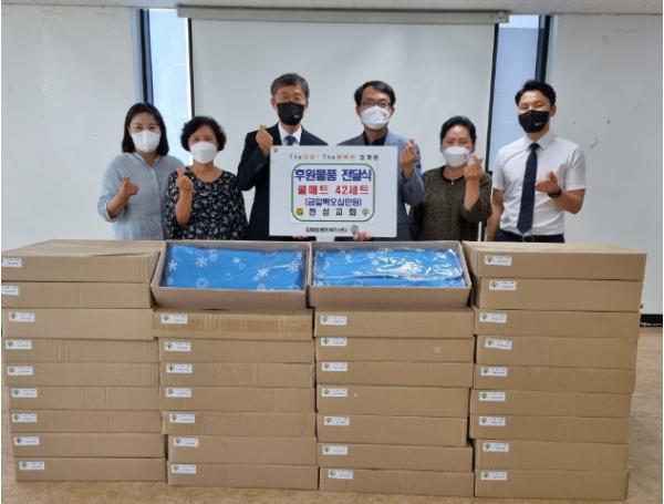 이날 천성교회에서 방문한 강석우 담임목사와 부교역자 외 2명의 성도들은 폭염에 취약한 가구를 위해 150만 원 상당의 쿨매트 42세트를 전달했다.