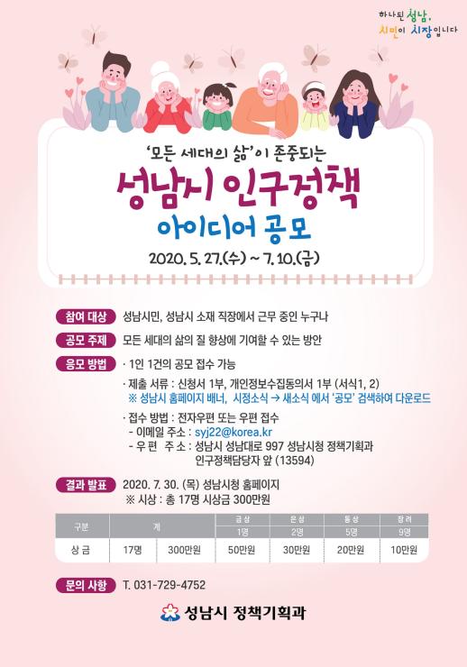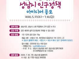 [KNT한국뉴스타임] 성남시는 5월 27일부터 오는 7월 10일까지 인구정책에 관한 시민 아이디어를 공모한다.
