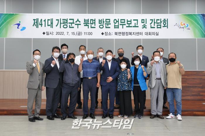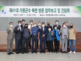 [한국뉴스타임=보도국] 15일 오전 서태원 가평군수는 북면행정복지센터를 방문하여 업무보고를 받고 지역 단체장들과 간담회를 가졌다.