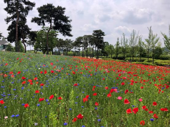 여주시(시장 이항진) 연양동 금은모래강변공원 야생초화원이 색색의 꽃양귀비와 수레국화로 장관을 이루고 있어 코로나19 사태로 탁트인 야외공간을 찾는 공원 이용객들의 마음을 ‘힐링’해주고 있다.