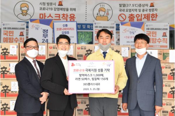 [KNT한국뉴스타임] 하남시 망월동에 소재한 365플러스 내과(원장 유정선)는 지난 25일 지역의 어려운 이웃에게 전달해 달라며 방역 마스크, 라면, 찜질팩 등 370만원 상당의 코로나19 극복지원 물품을 하남시에 기탁했다.
