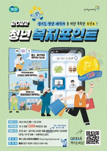 [한국뉴스타임=편집국] 경기도가 도내 청년 노동자들의 복리후생과 처우 개선을 위한 ‘청년 복지포인트’ 2차 참여자 1만 명을 8월 1일부터 16일까지 공개 모집한다.