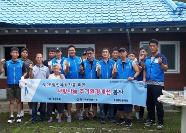 [한국뉴스타임=편집국] 경기북부보훈지청은 7월 23일 PJ청년봉사단(이은재 상사, 노대균 상사)와 파주 거주 6.25 참전유공자 박?원(해병대 1기) 어르신댁을 대상으로 “사랑나눔 집수리 봉사”를 실시했다.