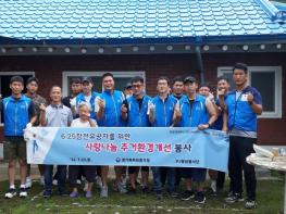 PJ청년봉사단은 6월 호국보훈의 달 후원품 전달을 위해 어르신 댁을 방문하였다가 노후화로 보수가 필요한 집 상태를 보고 금번 봉사단 회원 20여명과 함께 재방문하여 담장 보수, 대문 페인트칠, 대청소 및 방역 등을 실시했다.
