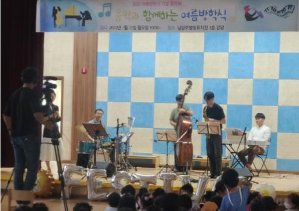 [한국뉴스타임=편집국] 구리남양주교육지원청 남양주별빛유치원은 2022년 7월 25일 혼성 5인조 재즈밴드 JAM(재즈음악대)을 초청하여 '음악과 함께하는 여름 방학식'을 운영했다.