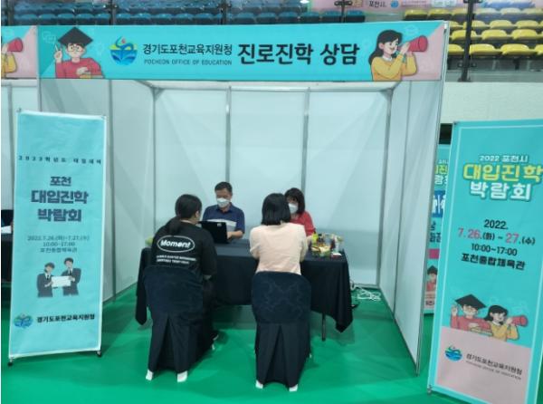 [한국뉴스타임=편집국] 포천교육지원청은 7월 26일부터 27일까지 이틀간 포천 관내 고등학생과 학부모를 위한 ‘포천 대입진학박람회’를 포천종합체육관에서 개최한다. 서울·수도권 등 전국 17개 대학이 참여하여 29개의 부스를 운영하고 입학사정관과 포천 진로진학지원단 교사가 직접 학생들과 대면하여 1:1 상담을 진행한다.