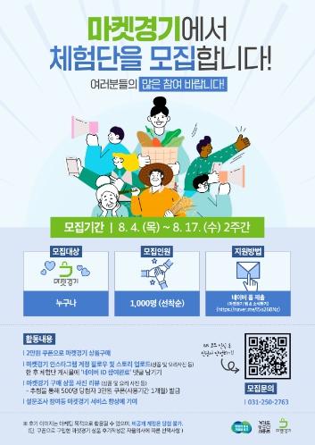 선발된 체험단은 ▲마켓경기 상품 구매, 체험용 2만 원 쿠폰 발급 ▲마켓경기 사회관계망서비스(SNS) 또는 상품 페이지에 사진 포함 후기 작성 시 500명 추첨을 통해 3만 원 상품 쿠폰 추가 지급 등의 혜택을 받을 수 있다.