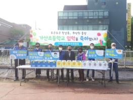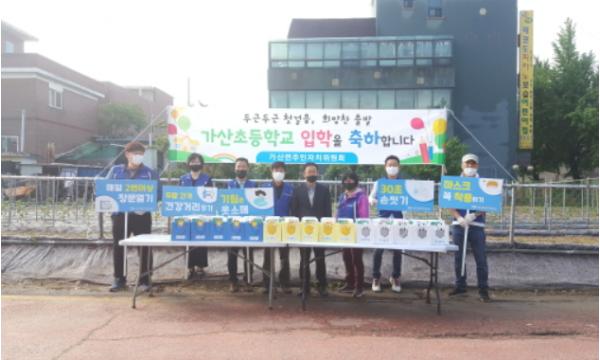 이날 참석한 가산면 주민자치위원 10여 명은 그동안 코로나19로 인해 입학 및 등교가 늦어진 가산초등학교 1, 2학년 50여 명을 대상으로 KF 마스크, 소독제, 비타민, 항균 마스크 케이스, 소독 티슈를 담은 푸짐한 선물꾸러미를 등굣길에 전달했다.