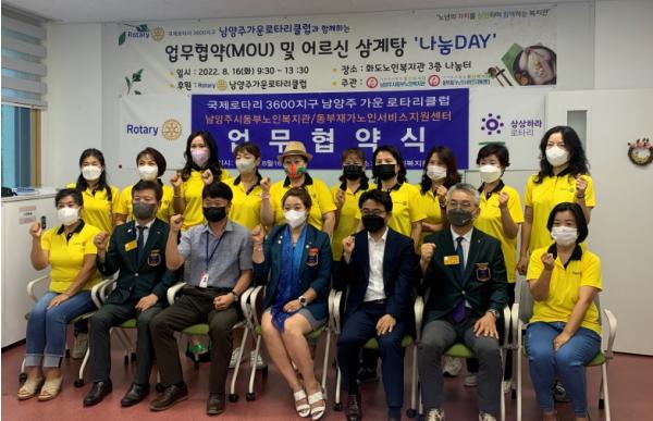 남양주시동부노인복지관(사회복지법인 휴먼복지회, 관장 김종규)과 동부재가노인지원서비스센터(원장 윤인규)는 지난 16일 남양주가운로타리클럽과 업무협약(MOU)을 체결하고 삼계탕 나눔행사를 진행했다고 밝혔다.