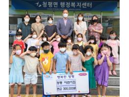 [한국뉴스타임=편집국] 가평군 청평면은 17일 청평어린이집 원생 및 학부모는 이웃돕기 성금 30만원을 기탁했다고 밝혔다.