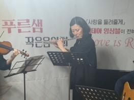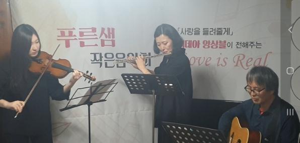 이번 음악회는 리데아 앙상블의 “사랑을 전해줄게”라는 콘셉트로 풀룻(고혜영 단장), 바이올린(이서진), 기타 및 노래(윤영진)의 3중주의 악기 및 노래 공연으로 진행했다.
