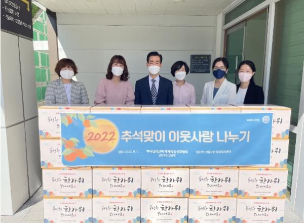 [한국뉴스타임=편집국] 남양주시 진접오남행정복지센터(센터장 윤경배)는 1일 하나님의교회 세계복음선교협회에서 추석맞이 식료품 꾸러미 20세트(100만 원 상당)를 경기 사회복지공동모금회를 통해 진접읍 지역사회보장협의체에 기부했다고 밝혔다.