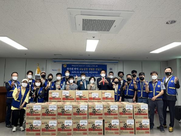 [한국뉴스타임=편집국] 구리시는 31일 구리화랑로타리클럽(회장 신현승, 이하 로타리클럽) 주관으로 코로나와 경기침체로 어려움을 겪는 취약계층 주민에게 라면 50박스(1,500개)를 전달하는 행사를 가졌다.