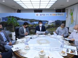 [한국뉴스타임=편집국] 구리시는 31일, 교류 도시인 충청북도 단양군에서 방문한 신상균 영춘면장 등 8명의 방문단과 구리시청에서 간담회를 갖고 양 지자체 간 협력을 다졌다.
