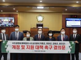 한편, 본회의 안건 제안설명에 앞서 강민숙 의원은 소상공인 지원대책과 재난지원금 지급 관련 향후 계획에 대한 5분 발언을 했고, 가평군의회에서는'수도권정비계획법'의 수도권 지정으로 인해 지역발전을 가로막고 인구 위기를 심화시키고 있는 현실을 개선할 것을 강력하게 요청하기 위해'수도권정비계획법의 수도권 범위 개정 및 지원 대책 촉구 결의문'(이진옥 의원 대표발의)을 채택했다.