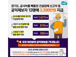 도는 지난 8일 2022년도 제3차 경기도 공익제보지원위원회를 열고 보상금 1건 1,427만 원과 포상금 12건 1,971만 원 등 총 3,398만 원을 지급하기로 했다고 22일 밝혔다.