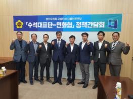 [한국뉴스타임=편집국] 경기도의회 교섭단체 더불어민주당(대표의원 남종섭, 용인3)은 22일 제1정담회실에서 민족화해협력범국민협의회(대표상임의장 이종걸) 관계자와 정담회를 개최했다.