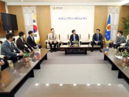[한국뉴스타임=편집국] 염종현 경기도의회 의장(더민주, 부천1)은 23일 의장 접견실에서 ㈔한국청년회의소(Junior Chamber, JC) 경기지구 임원진과 접견했다.