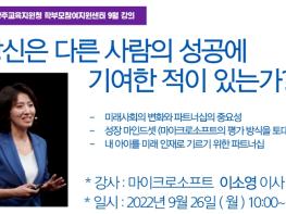 이소영 강사(마이크로소프트 이사)는 연수를 통해▲미래사회의 변화와 파트너십의 중요성 ▲성장마인드셋의 놀라운 효과 ▲ 내 아이를 미래인재로 기르기 위한 부모의 역할에 관해 강의했다.